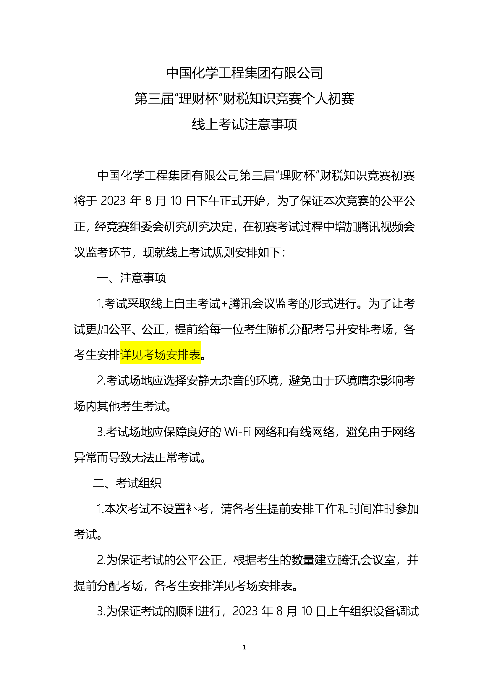 中国化学第三届“理财杯”财税知识竞赛个人初赛线上考试要求