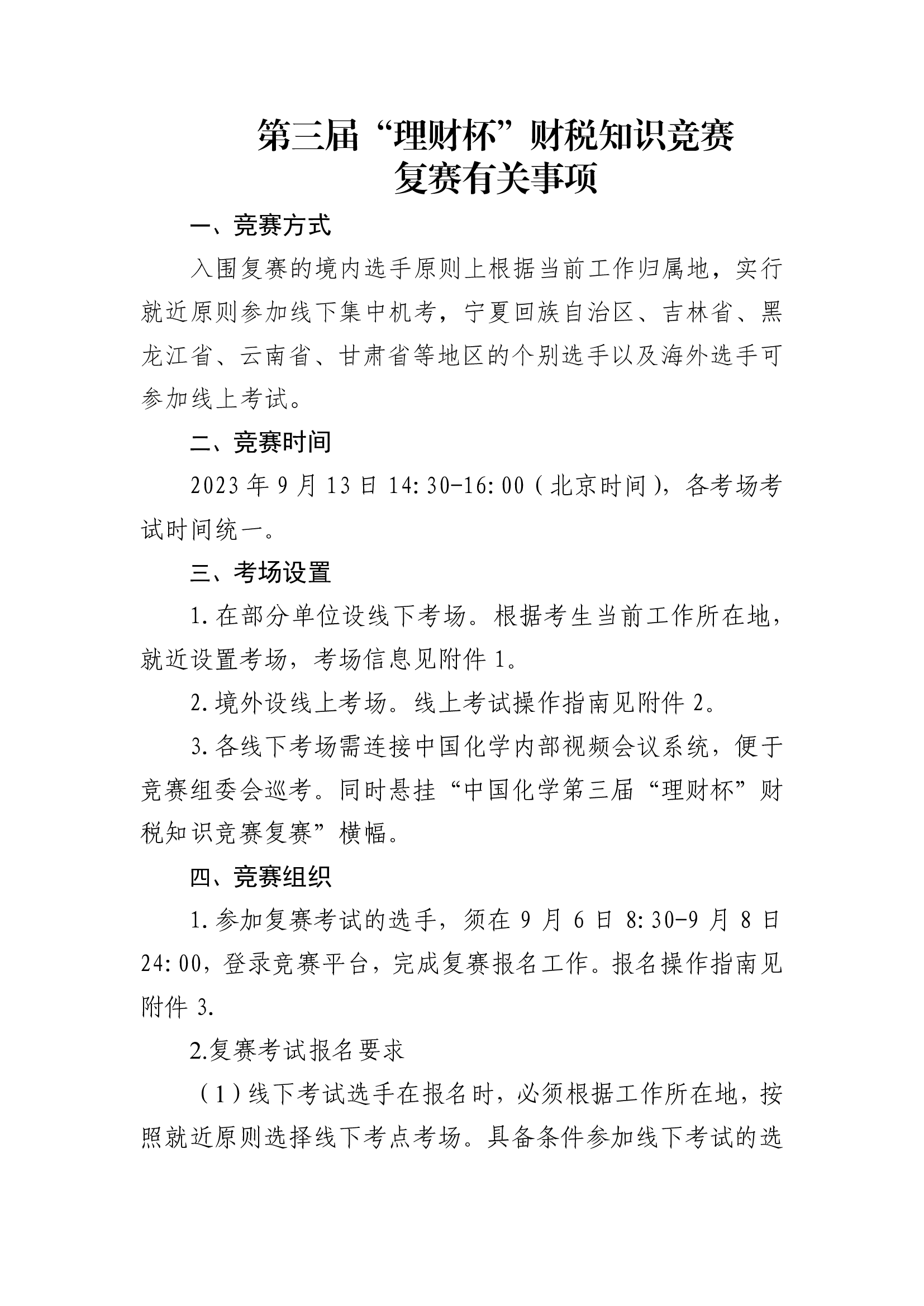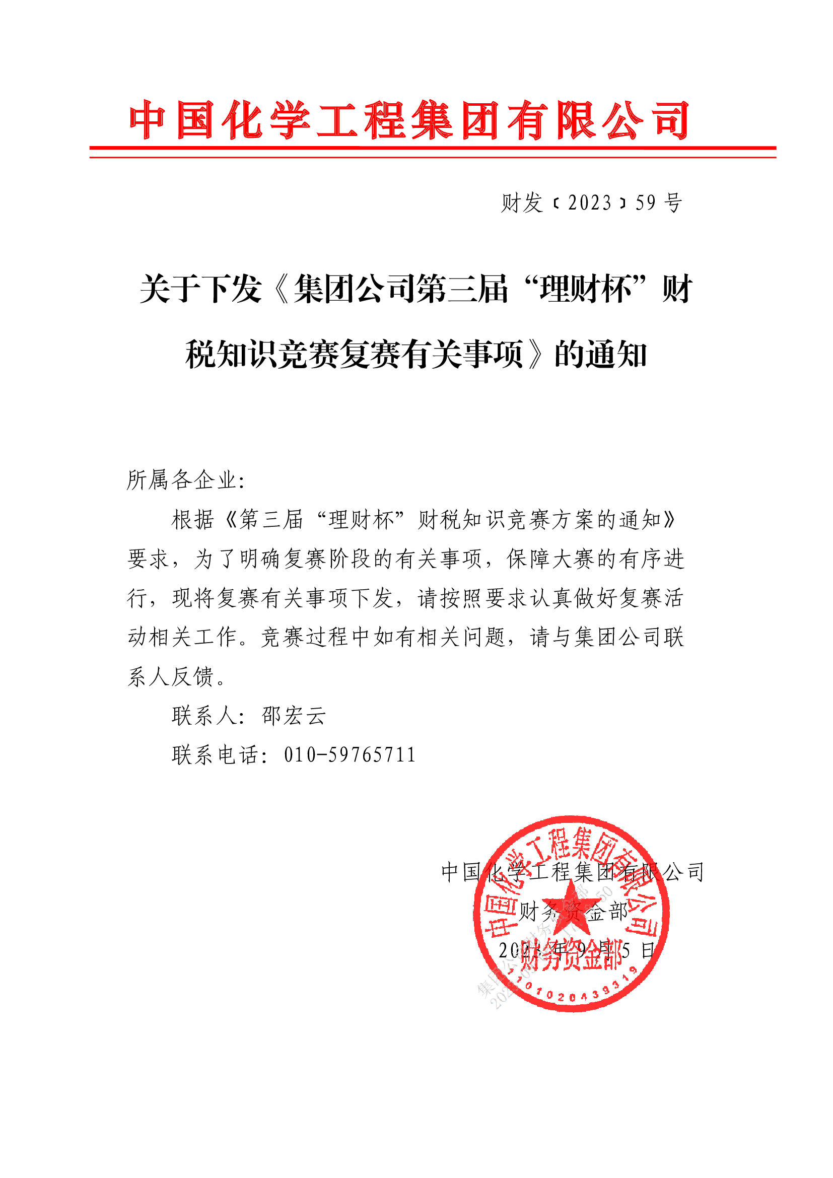 关于下发《集团公司第三届“理财杯”财税知识竞赛复赛有关事项》的通知
