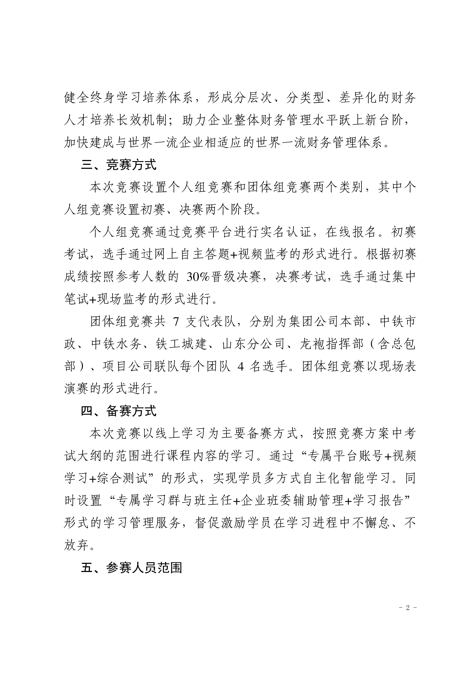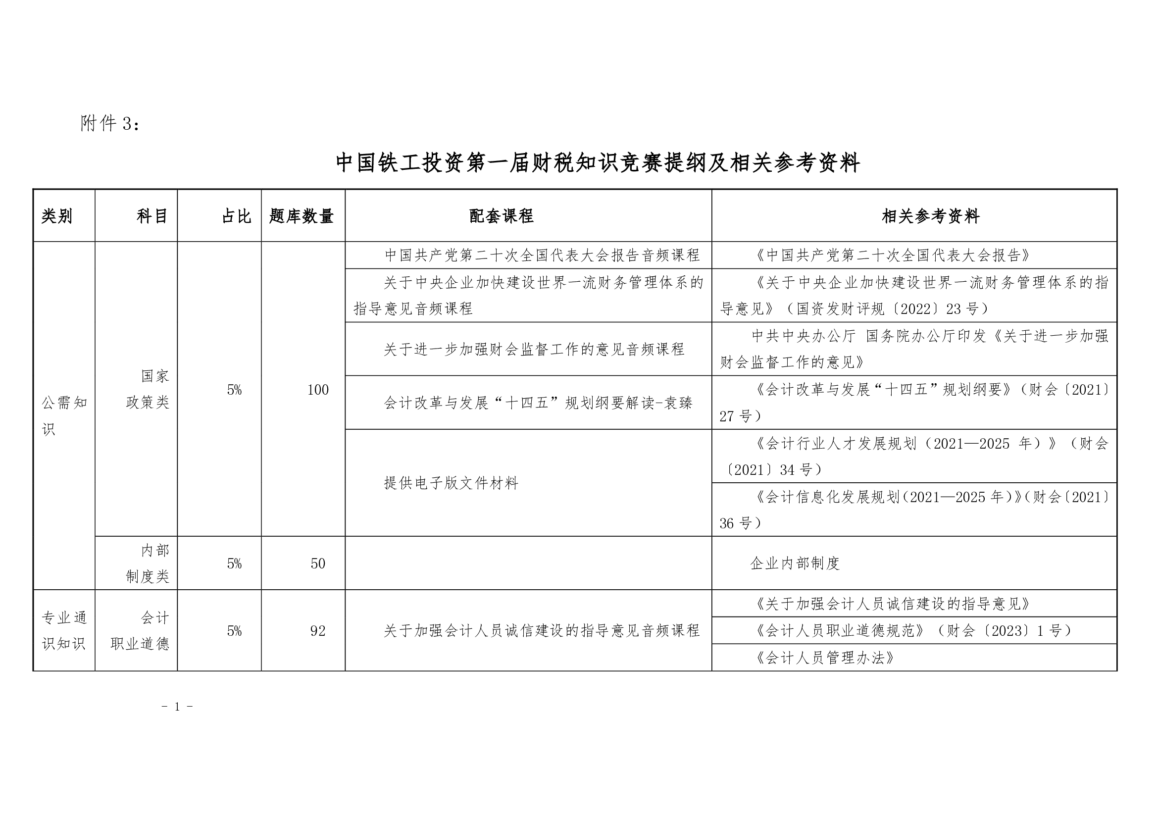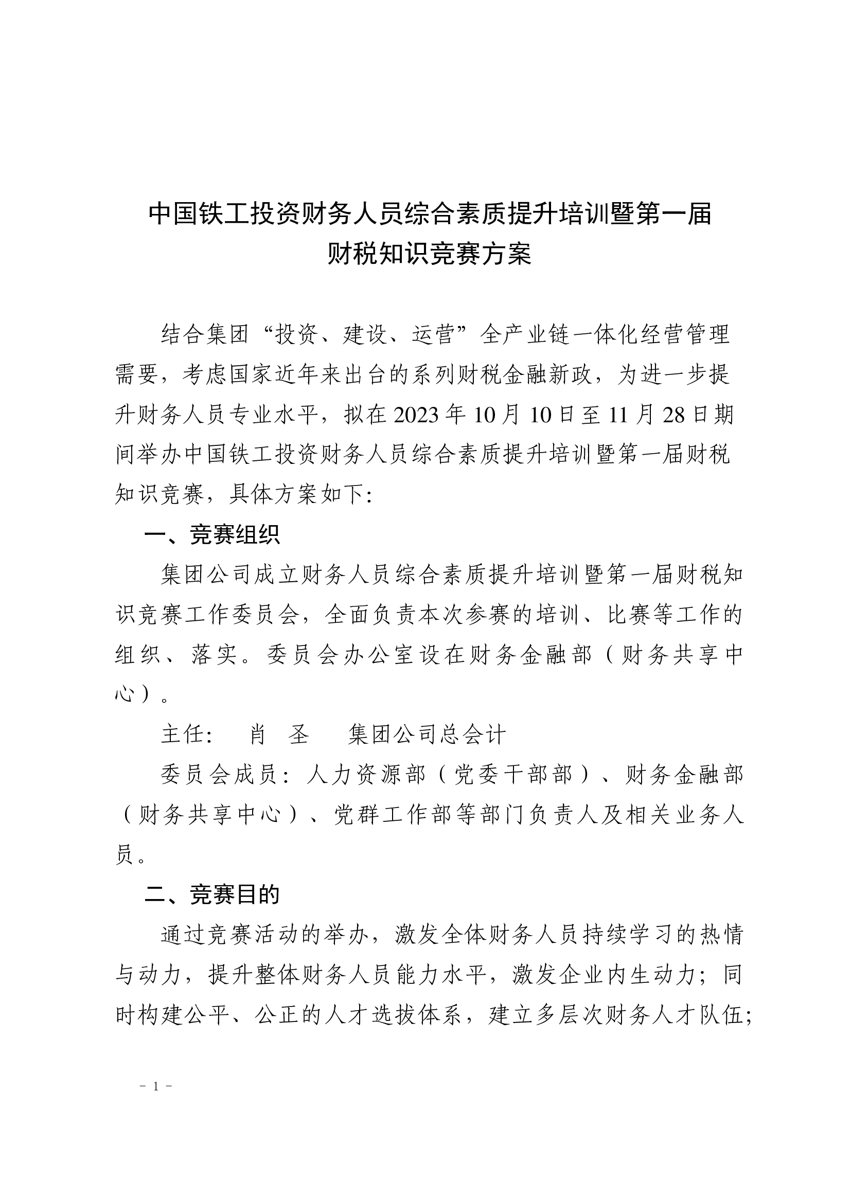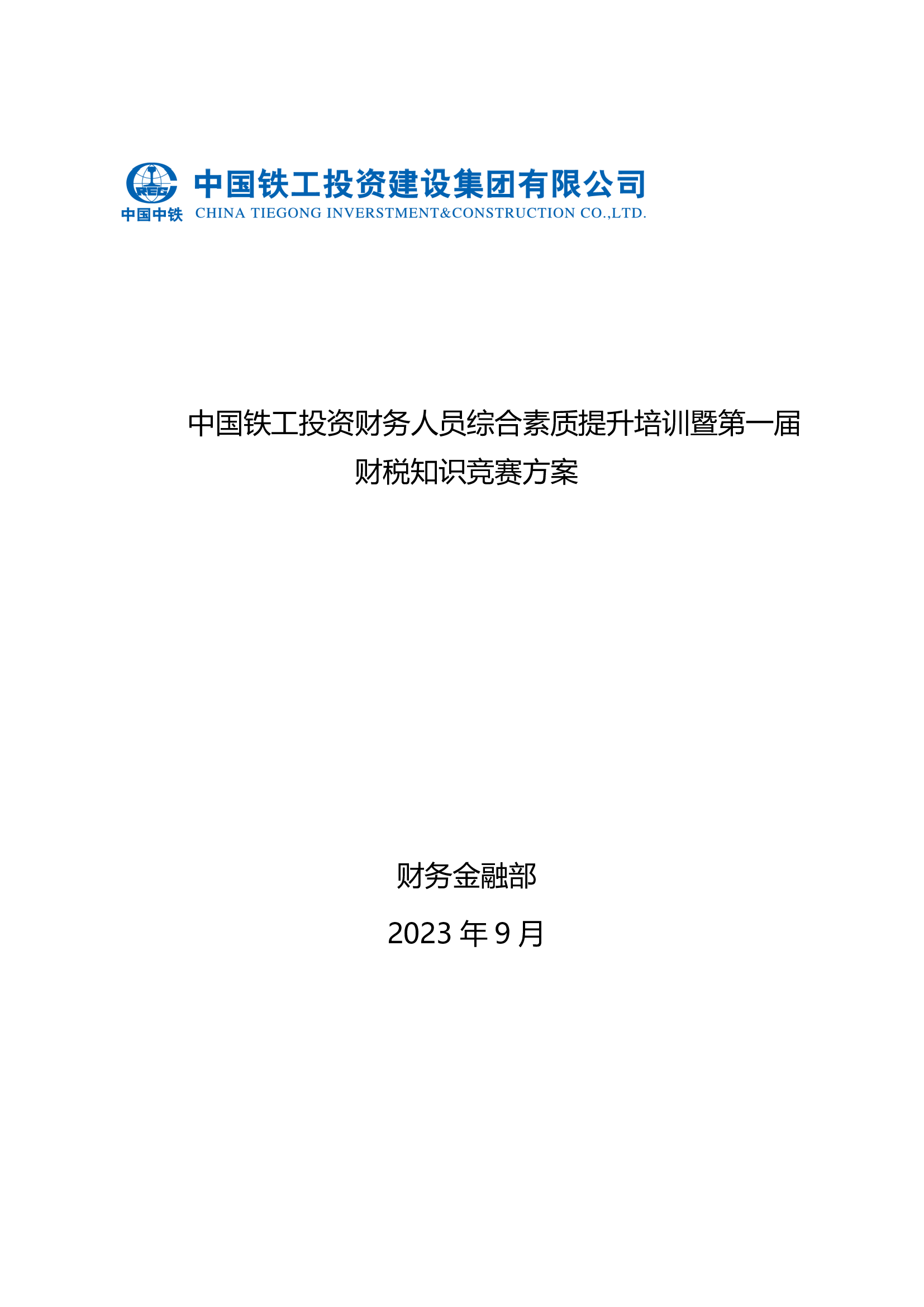 中国铁工投资财务人员综合素质提升培训暨第一届财税知识竞赛方案