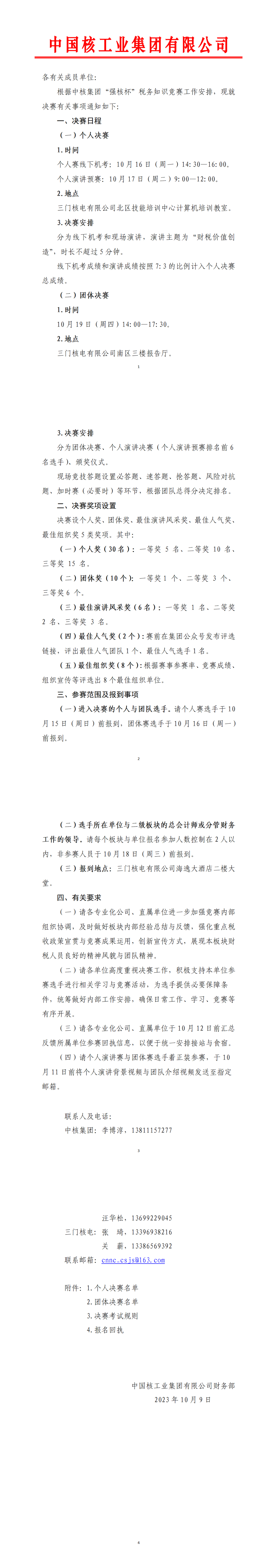 【竞赛通知】 关于中核集团第一届“强核杯”税务知识竞赛决赛的通知