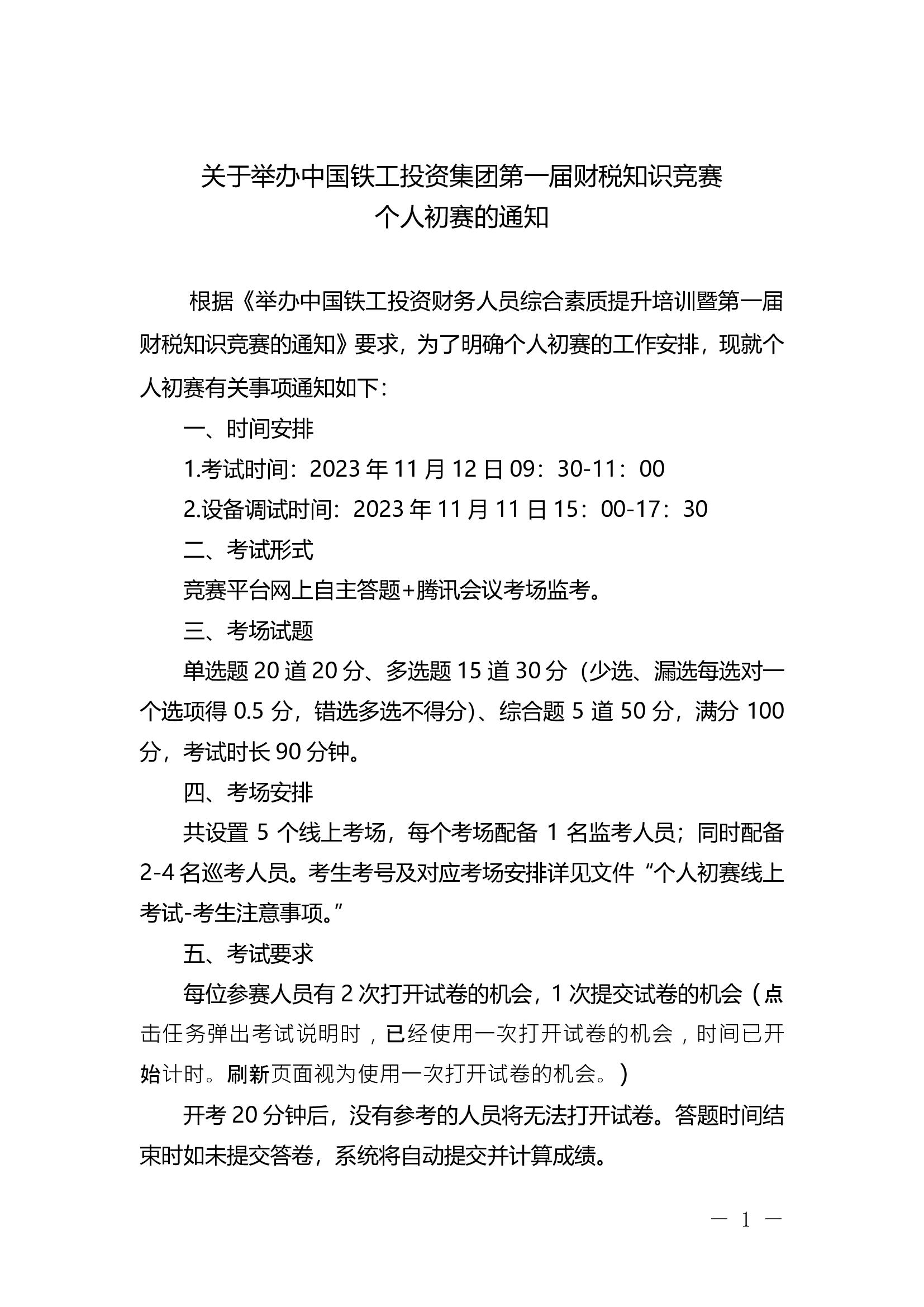 关于举办中国铁工投资集团第一届财税知识竞赛 个人初赛的通知