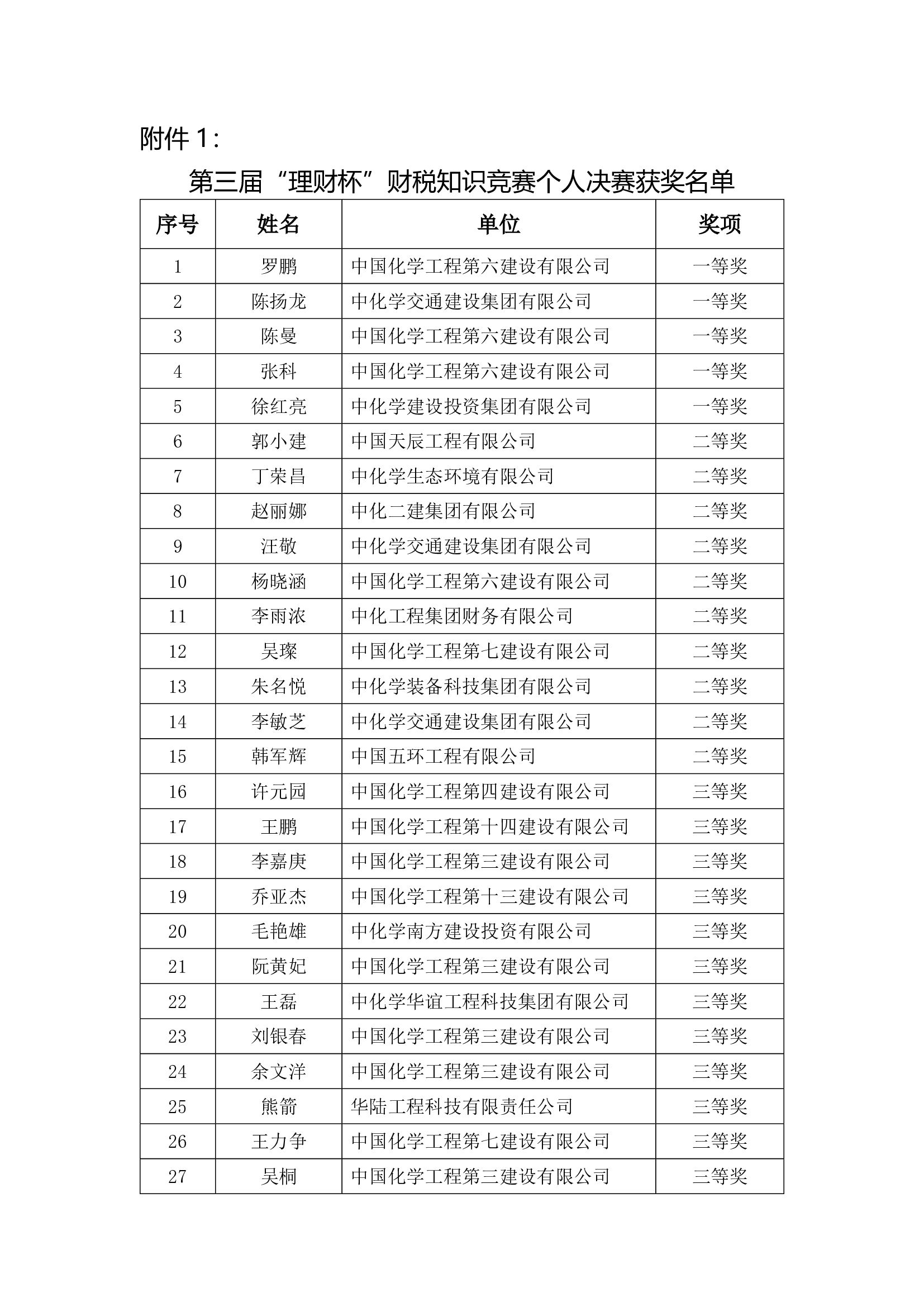 关于公布集团公司第三届“理财杯”财税知识竞赛总决赛获奖名单的通知(财297)
