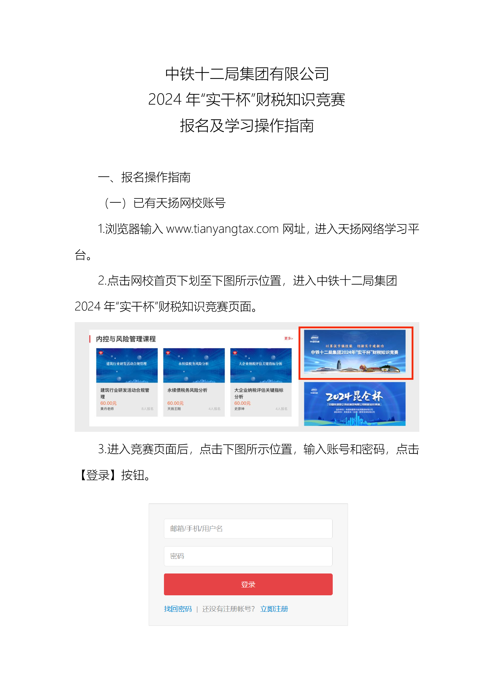 中铁十二局集团有限公司2024年“实干杯”财税知识竞赛报名及学习操作指南