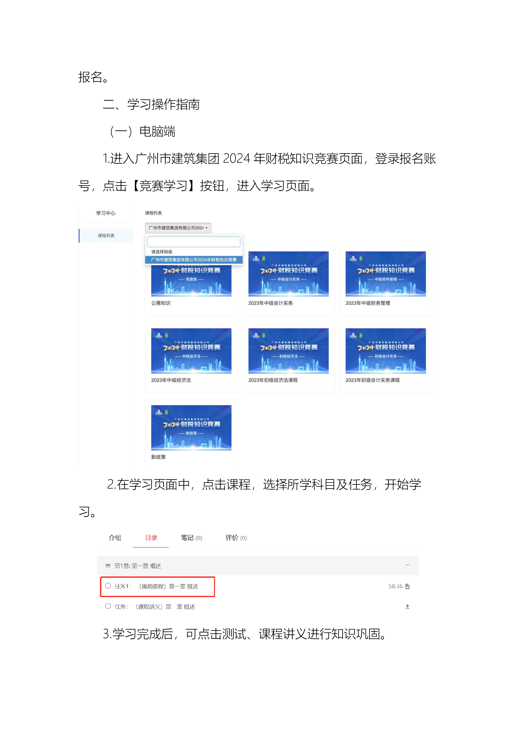 广州市建筑集团2024年财税知识竞赛报名及学习操作指南