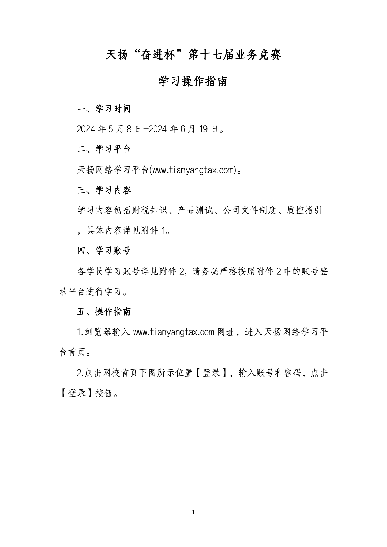 【操作指南】天扬“奋进杯”第十七届业务竞赛学习操作指南