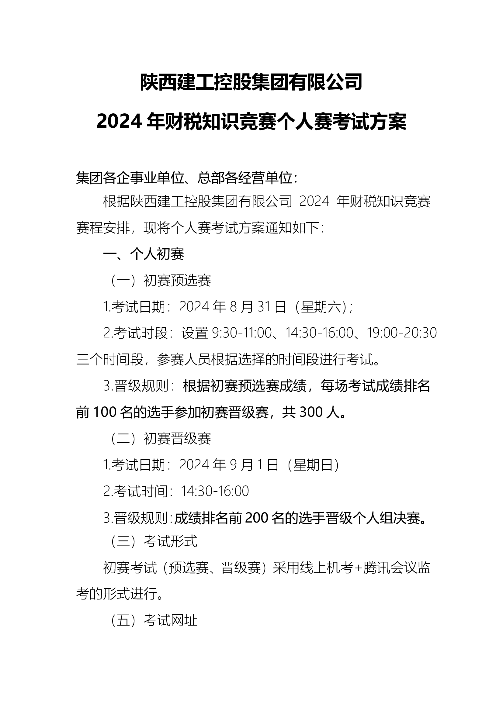 陕西建工控股集团有限公司2024年财税知识竞赛个人赛考试方案