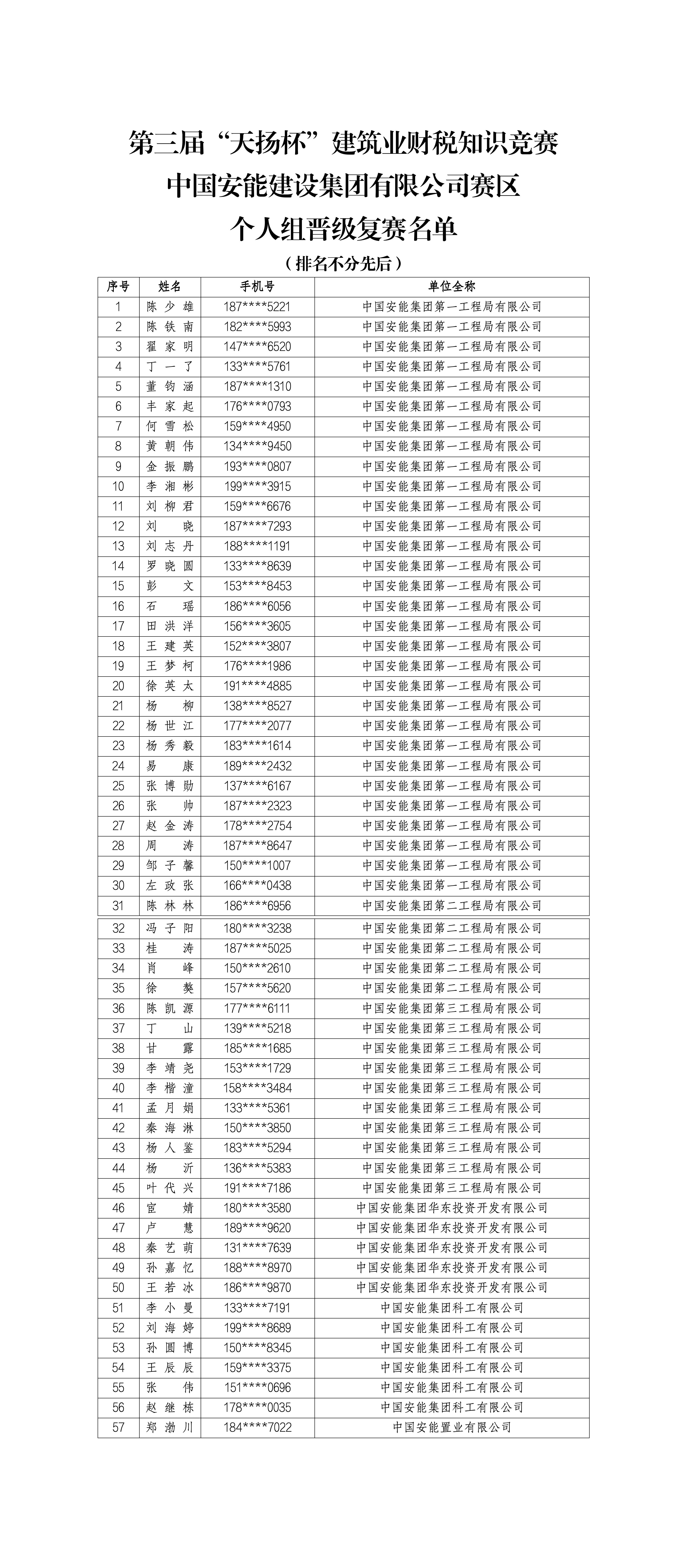 2. 第三届“天扬杯”建筑业财税知识竞赛晋级复赛名单