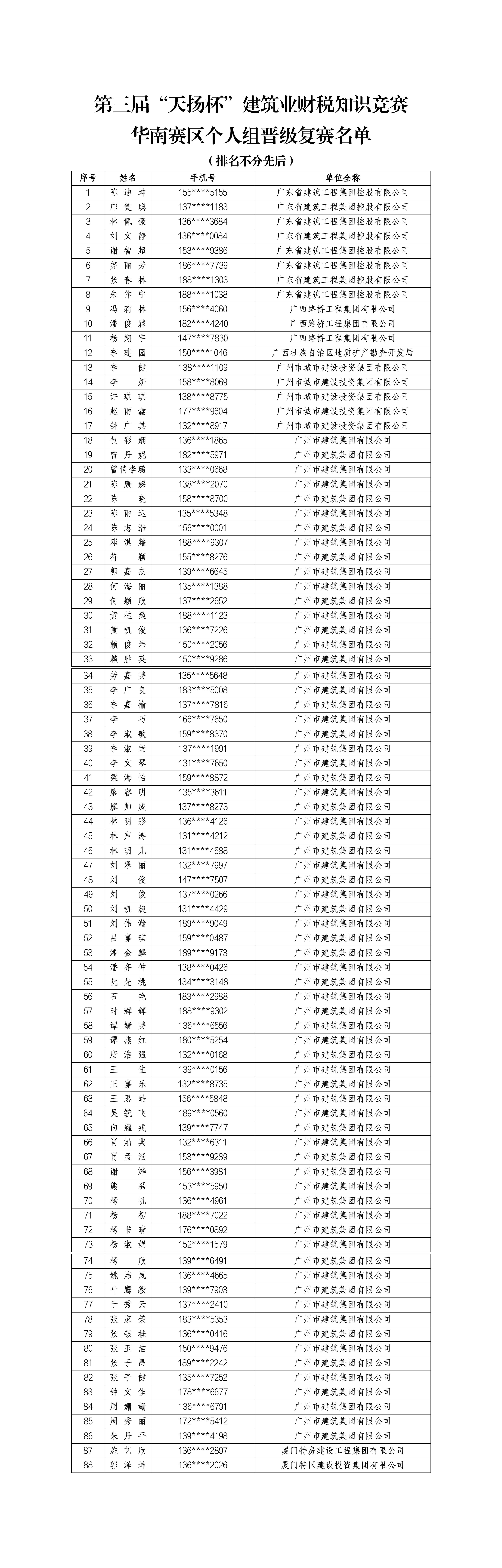2. 第三届“天扬杯”建筑业财税知识竞赛晋级复赛名单