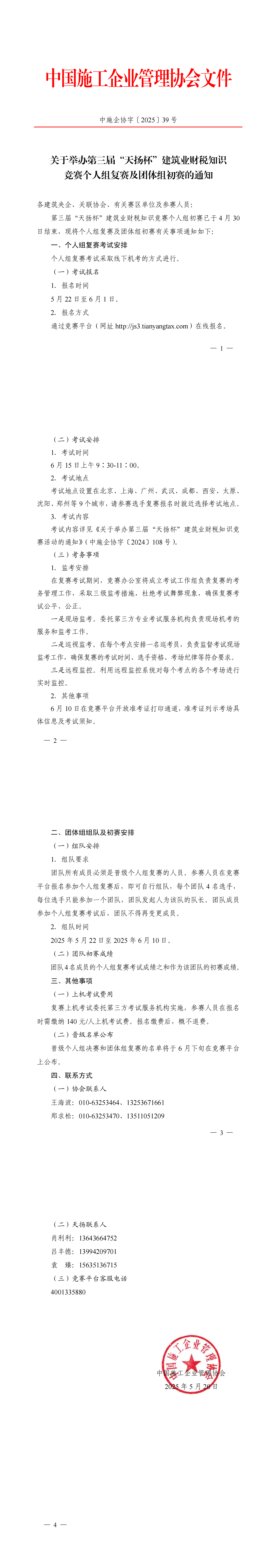 关于举办第三届“天扬杯”建筑业财税知识竞赛个人组复赛及团体组初赛的通知