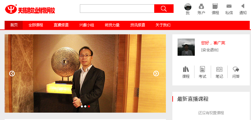 本次升级,我们对网校首页布局进行了优化。将原首页的内容进行了归类划分和整理,优化了布局。将原课程目录和直播答疑课时间安排进行了简化;同时将今日焦点和法规库合并建立起了新的栏目“资讯频道”;调整并突出了“首页”、“全部课程”、“直播频道”、“师资力量”和“关于我们”等栏目的布局;新增了“兴趣小组”、“笔记”、“问答”、“私信”和“通知”等功能。