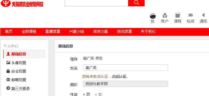 你是不是一直在为原网校系统个人信息没有个性而苦恼呢?现在新网校系统中的“个人中心”板块已经可以满足你展示自己的欲望啦。系统新增“个人中心”,在这里除了填写个人基本信息外还可以上传照片、设置昵称、头衔和个人签名。有了“个人中心”,再也不用担心别人觉得自己呆呆的啦!