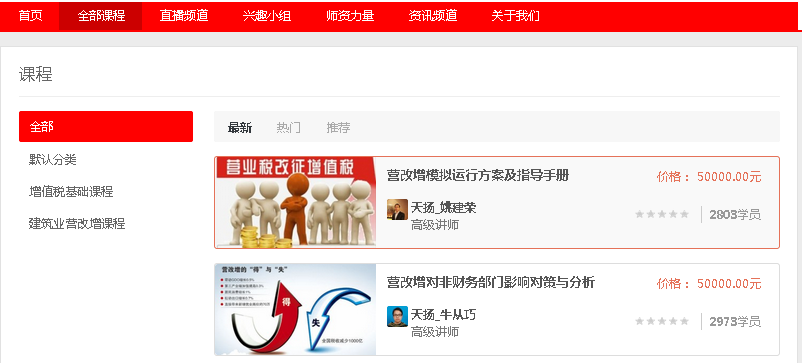 在新的系统下,我们对课程列表做了优化,对列表内容进行了精简、美化,并在课程列表的前面增加了对课程和讲师信息的介绍等内容。看一下新的界面,体验一下吧。