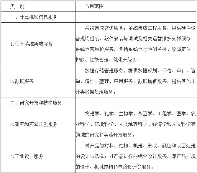 技术先进型服务业务领域范围(服务贸易类)