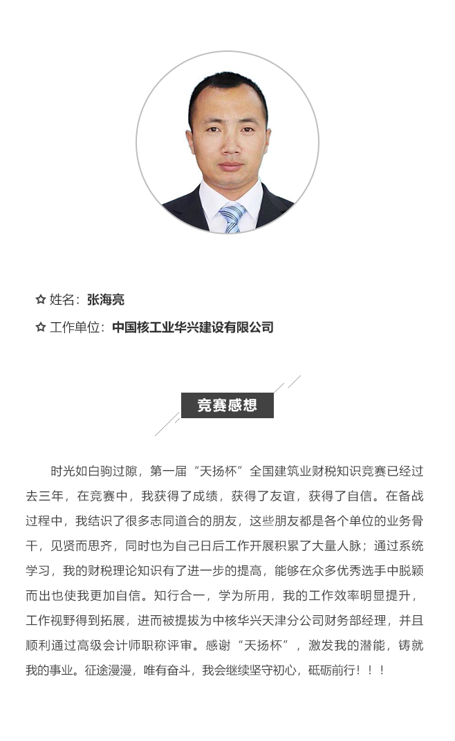 时光如白驹过隙,第一届“天扬杯”全国建筑业财税知识竞赛已经过去三年,在竞赛中,我获得了成绩,获得了友谊,获得了自信。