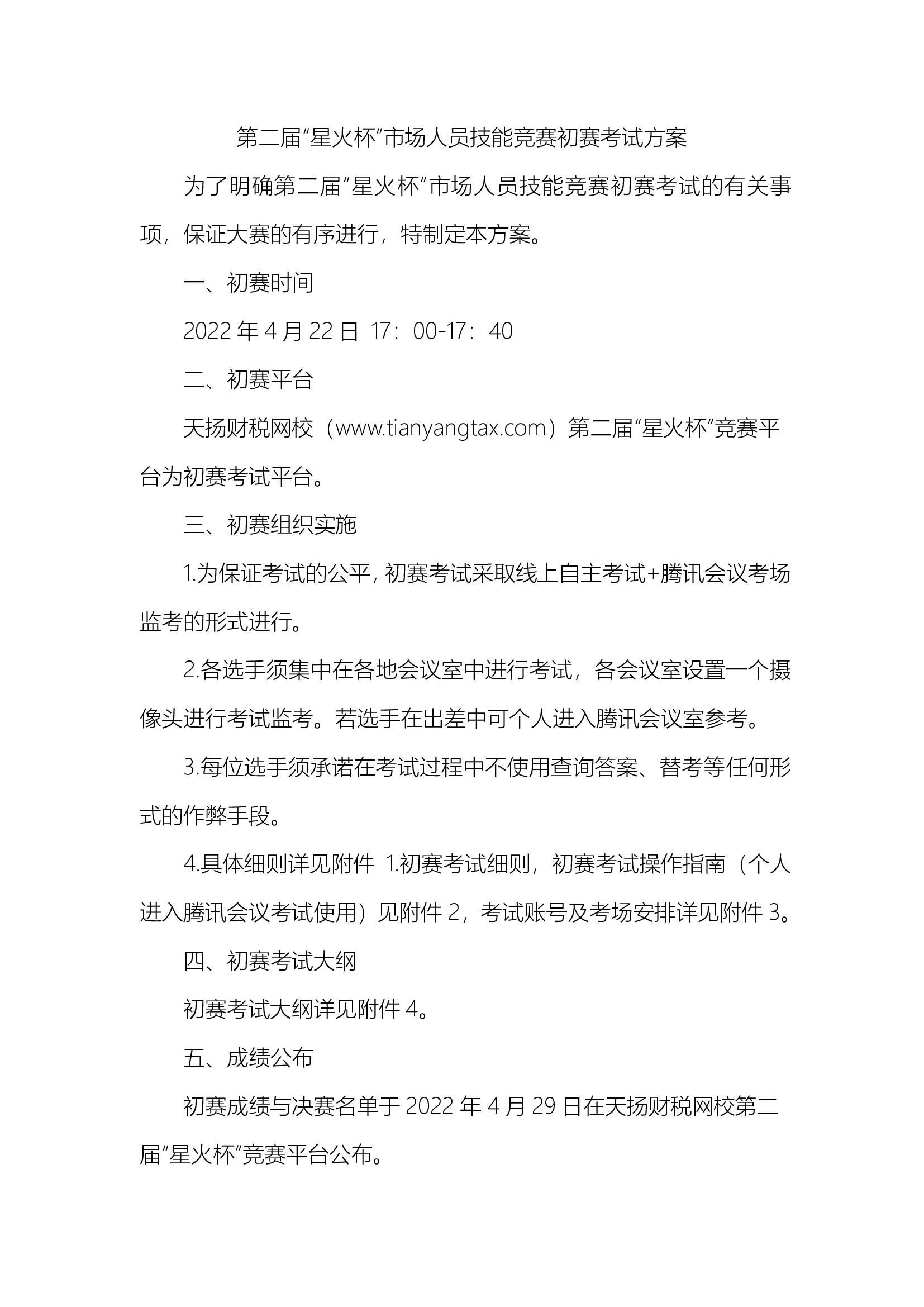 第二届“星火杯”市场人员技能竞赛初赛考试方案