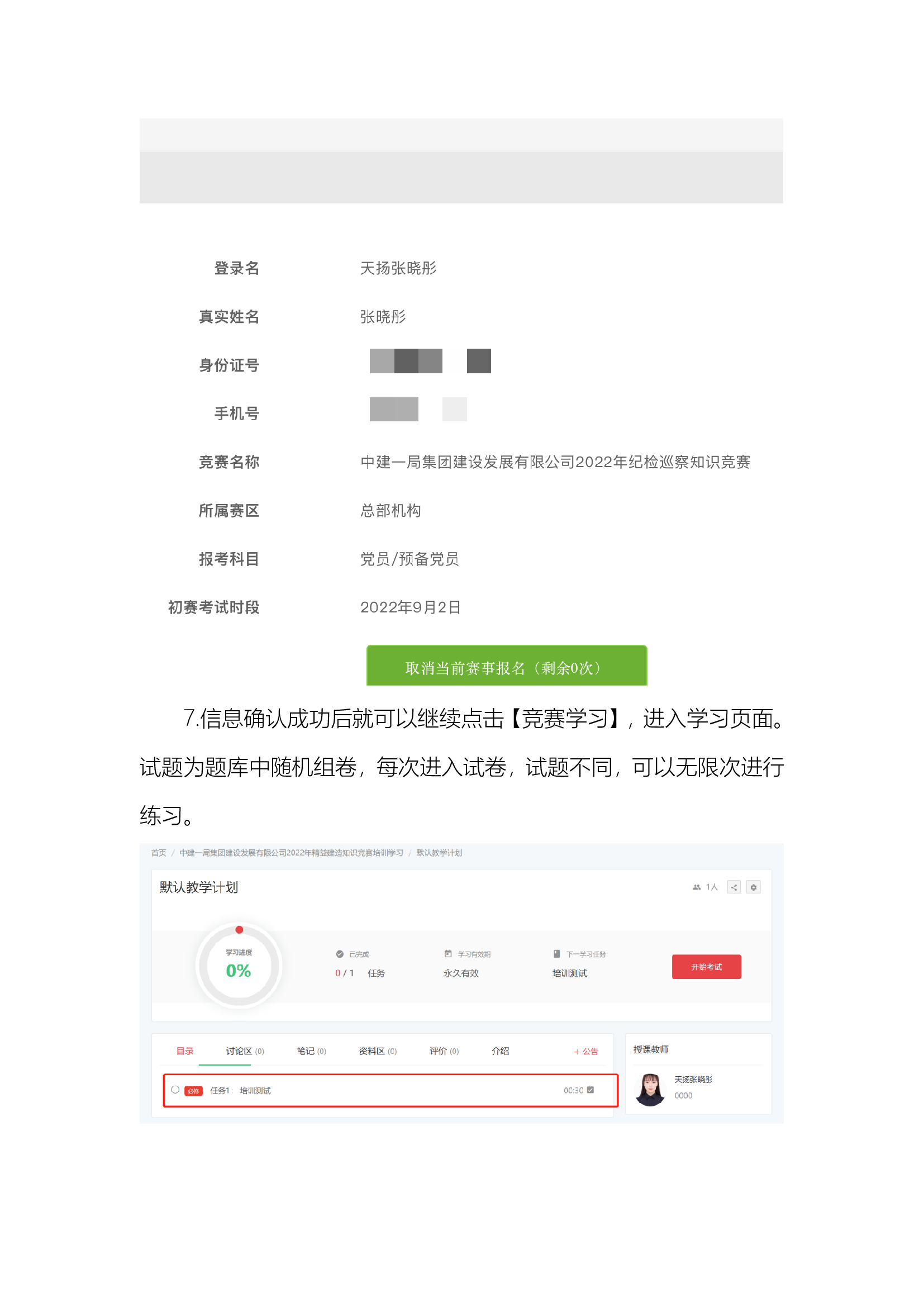 中建一局建设发展纪检巡察竞赛学习与考试操作指南