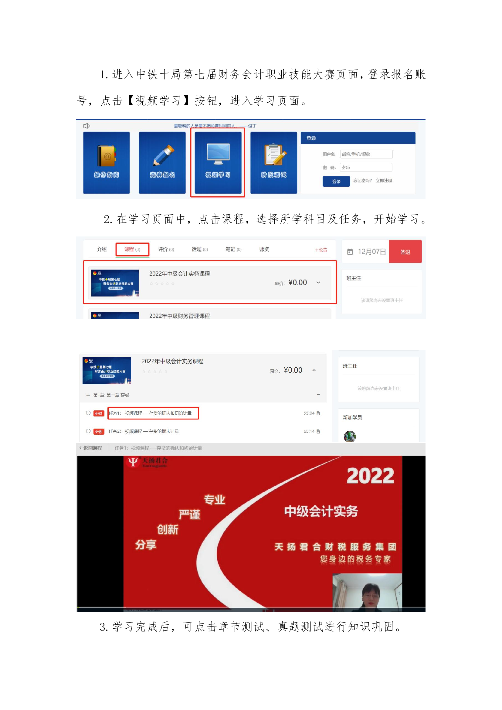 中铁十局第七届财务会计职业技能大赛报名及学习操作指南
