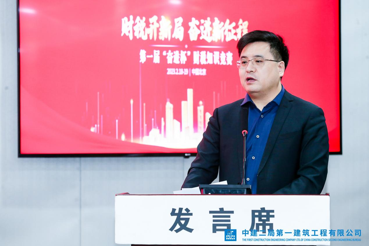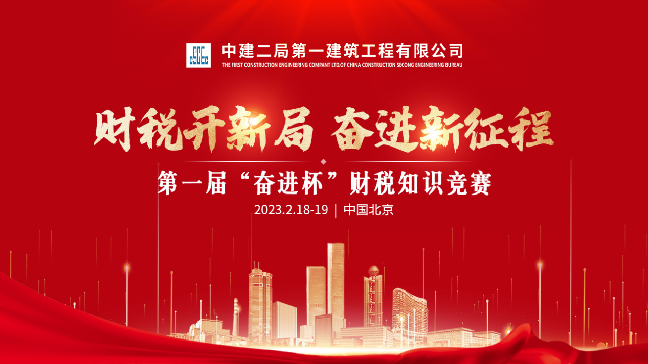 2月19日,由中建二局第一建筑工程有限公司财务部主办、北京天扬君合教育科技有限公司承办的第一届“奋进杯”财税知识竞赛在京圆满落幕。局财务资金部副总经理赵林出席竞赛并讲话。公司副总经理、总会计师王智源、财务部经理王佳、人力资源部经理张俊、党委工作部副部长王倩莅临竞赛现场。