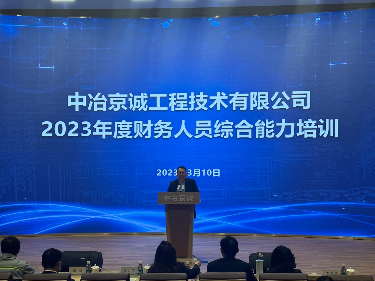 2023年3月10日,由中冶京诚工程技术有限公司主办,北京天扬君合教育科技有限公司承办的“2023年度财务人员综合能力培训”顺利开班,第一期培训主题为“数字化背景下税收风险防控”。本次培训采用“现场+线上直播”的形式进行,各单位财务人员共95人参训。中冶京诚工程技术有限公司总会计师张明欣出席本次培训并讲话,开班仪式由中冶京诚工程技术有限公司财务部部长邬世平主持。北京天扬君合财税服务集团京津冀第一中心总经理祝渊泓、第四事业部教育总监吕丰德参加了本次培训。
