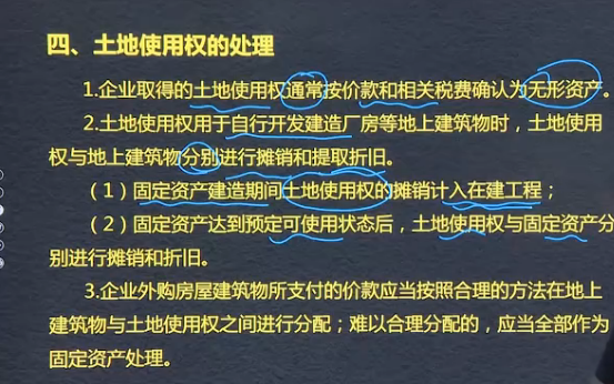 4、企业为建造固定资产通过出让方式取得土地使用权而支付的土地出让金不计入在建工程应确认为无形资产(建造期间的摊销计入在建工程。)