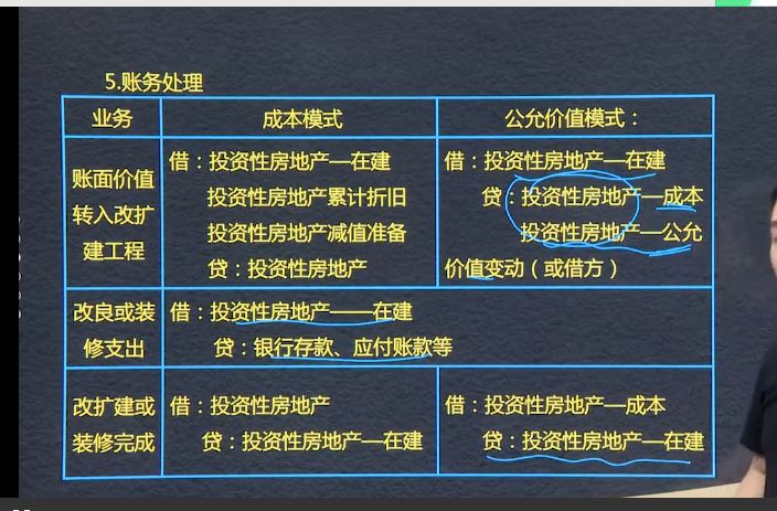2、成本模式下,减值一经计提不得转回。(同固定资产、无形资产)