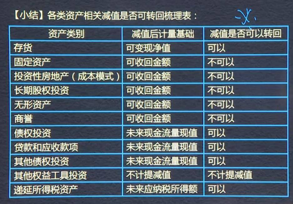 【小结】各类资产相关减值是否可以转回梳理表